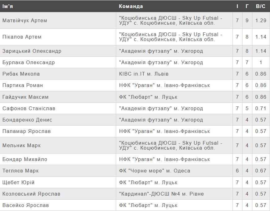 Рейтинг бомбардирів.