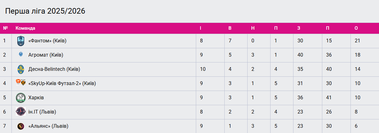 Поточна турнірна таблиця чемпіонату України серед команд Першої ліги.