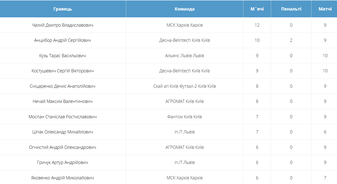 Рейтинг бомбардирів.