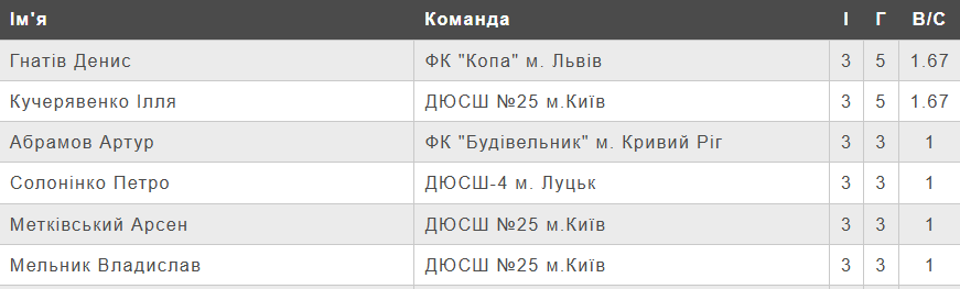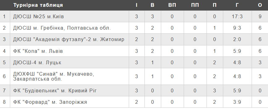 Турнірна таблиця чемпіонату України (U-13) серед команд Першої ліги після третього туру.