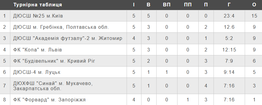 Турнірна таблиця чемпіонату України (U-13) серед команд Першої ліги після п’ятого туру.