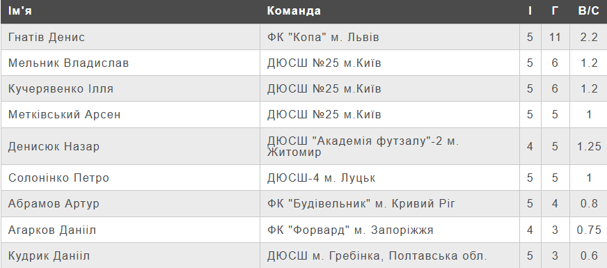 Рейтинг бомбардирів.