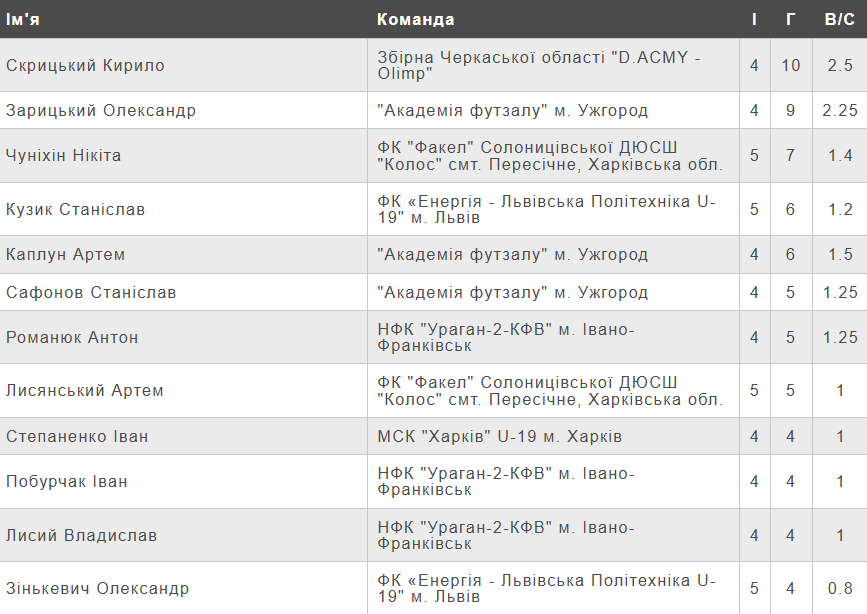 Рейтинг бомбардирів.