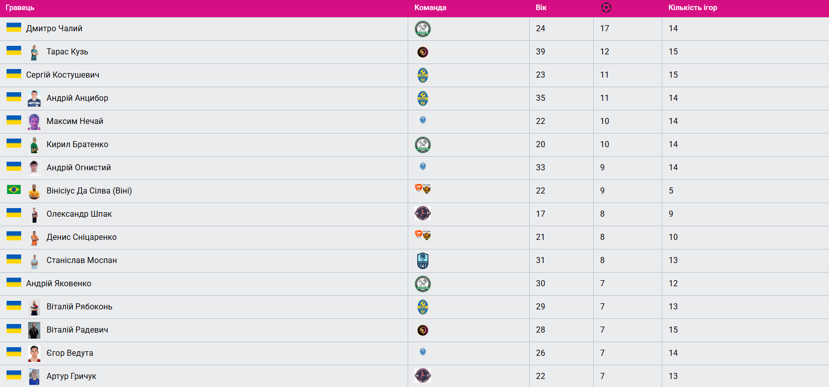 Турнірна таблиця чемпіонату України серед команд Першої ліги після сімнадцятого туру.