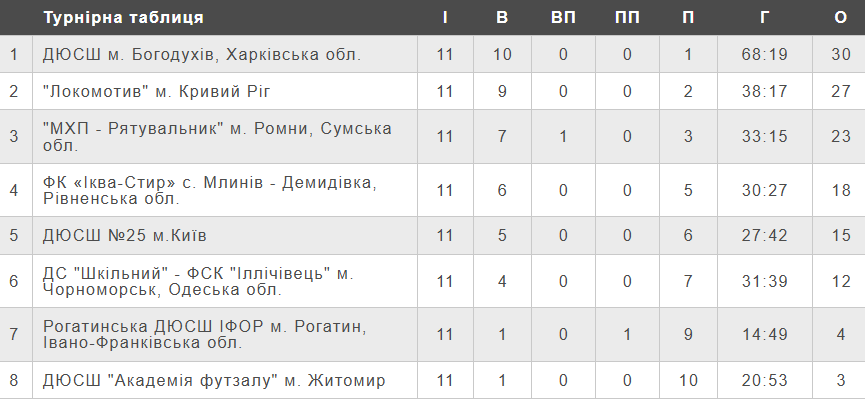 ДЮСШ (Богодухів) – Рогатинська ДЮСШ ІФОР (Рогатин) – 3:0