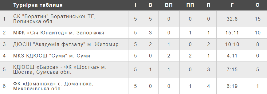 СК «Боратин» (Боратинська ТГ) – КДЮСШ «Барса» (Шостка) – 6:3