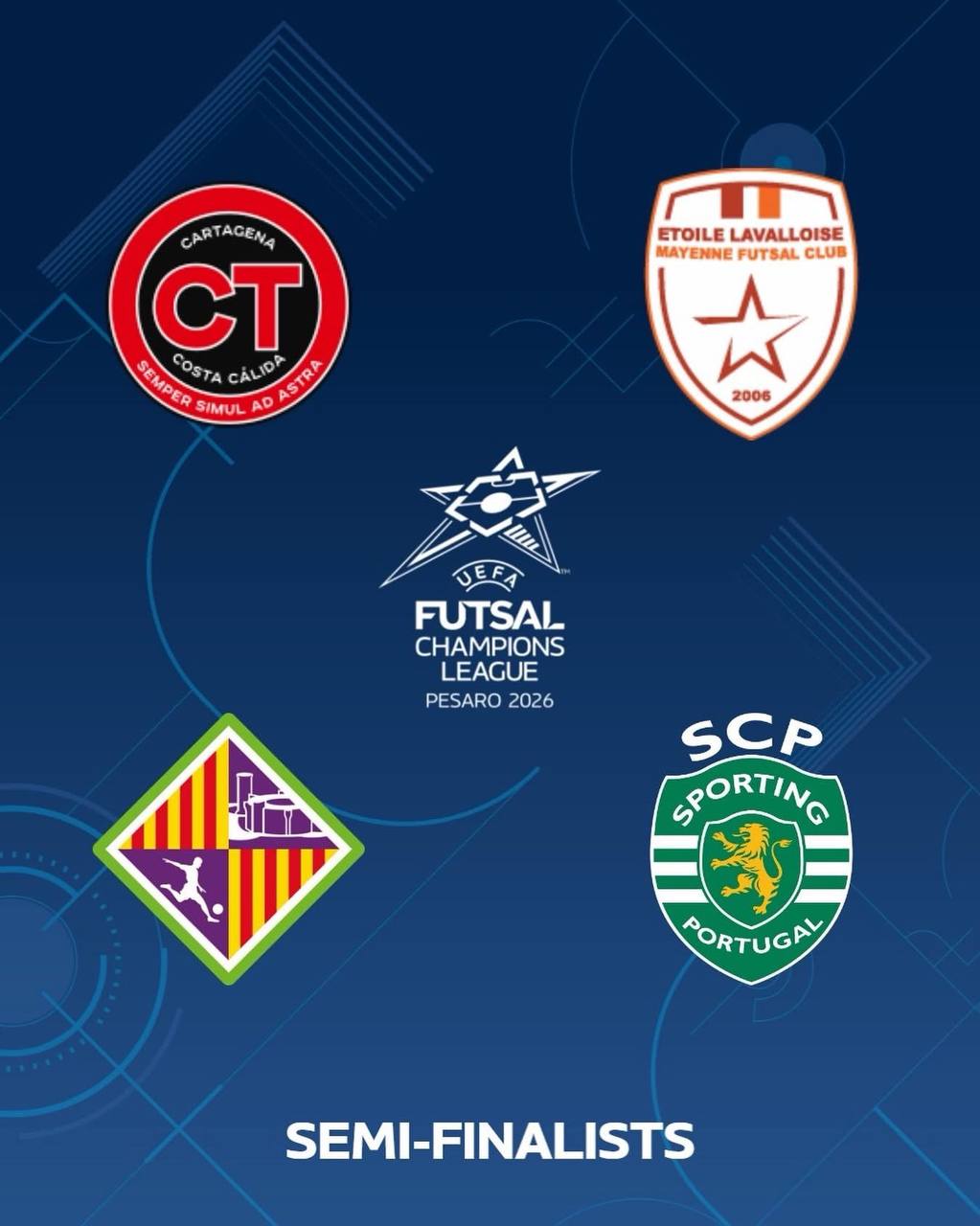 Отже, у «Фіналі чотирьох» Ліги чемпіонів, який відбудеться з 8 по 10 травня в італійському Пезаро, зіграють: «Етуаль Лаваллуаз» (Франція), «Пальма Футзал» (Іспанія), «Джимбі Картахена» (Іспанія) та «Спортінг» (Португалія). Жеребкування півфінальних пар відбудеться 17 березня.