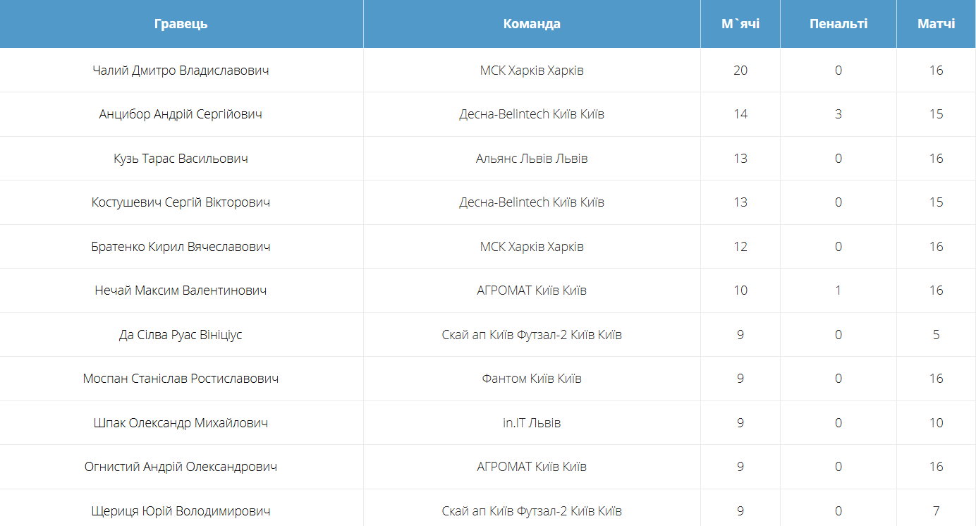 Рейтинг бомбардирів.