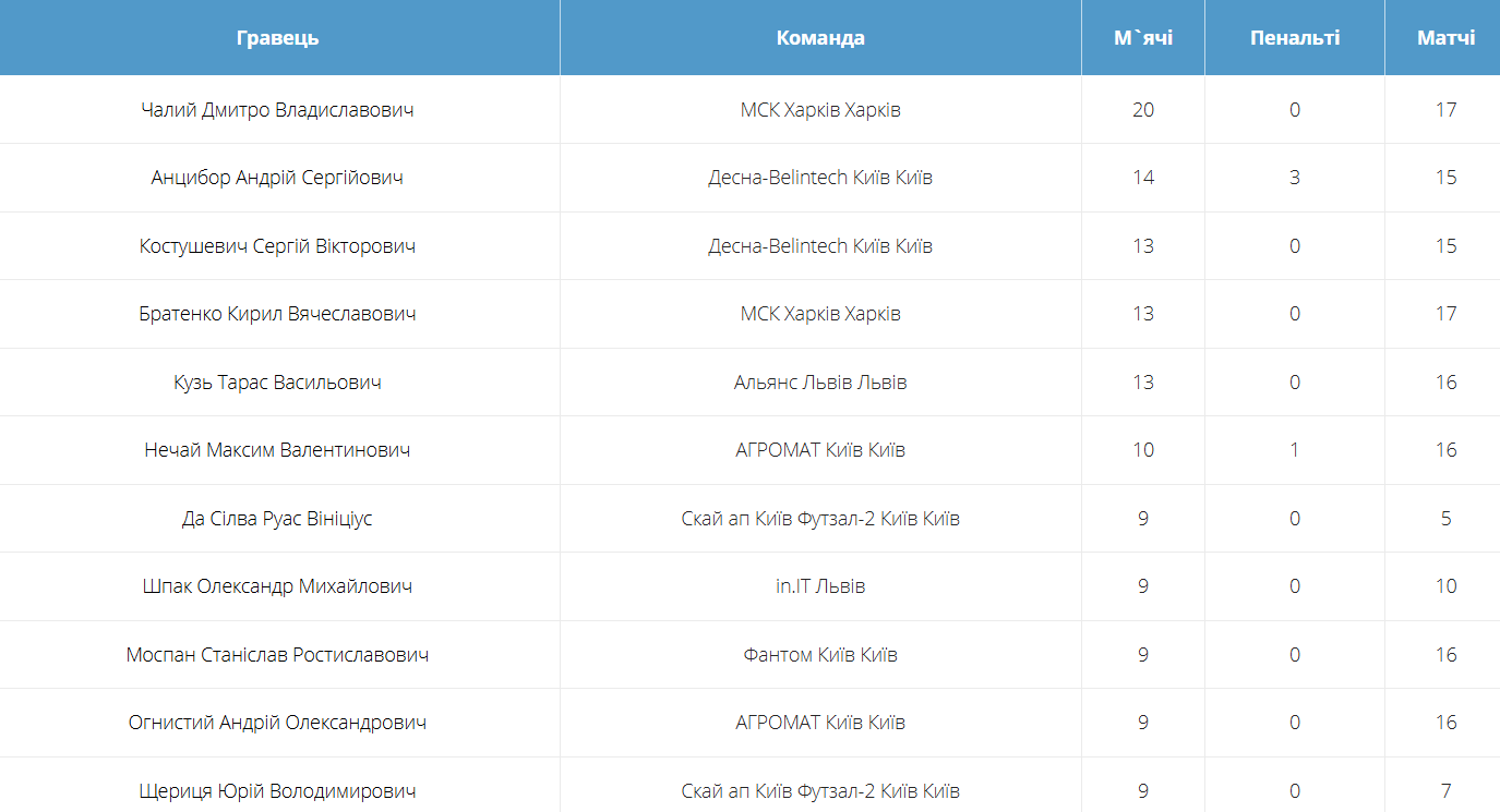 Рейтинг бомбардирів.