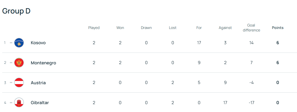 Поточна турнірна таблиця групи «D»