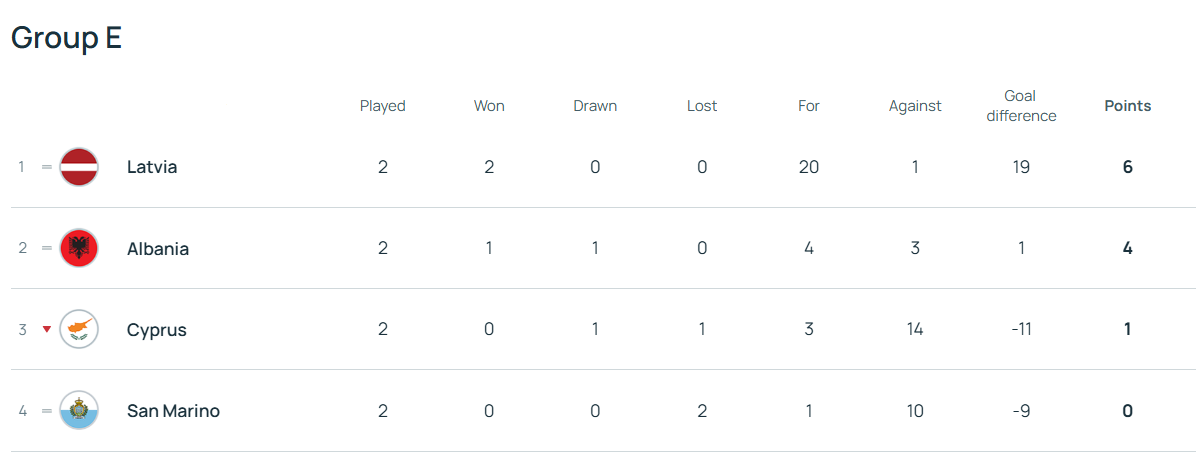 Поточна турнірна таблиця групи «Е»
