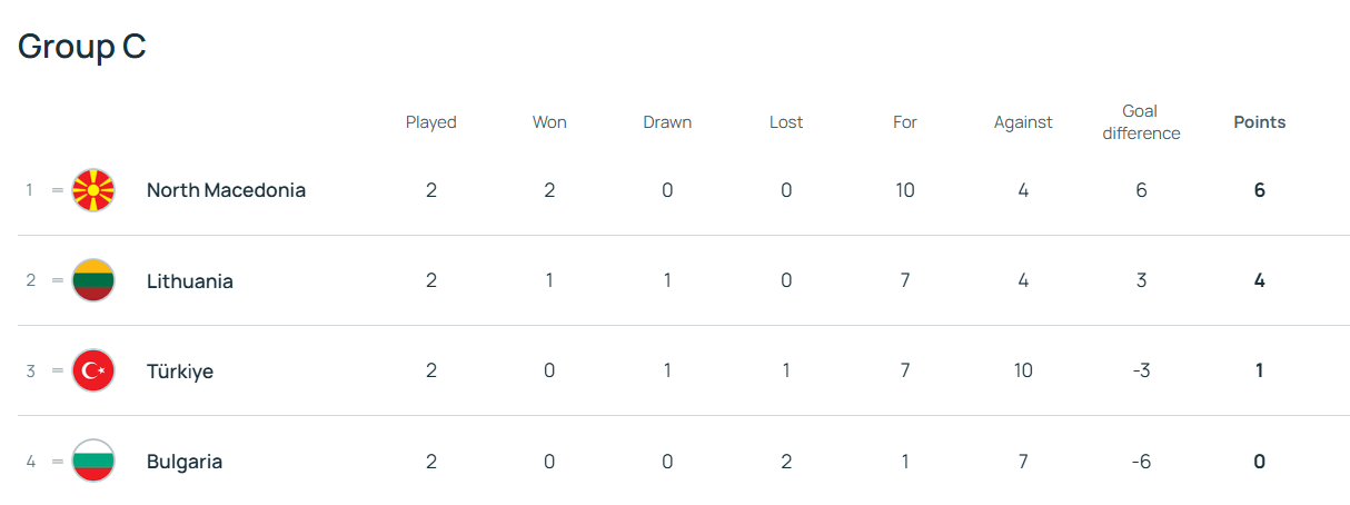 Поточна турнірна таблиця групи «С»