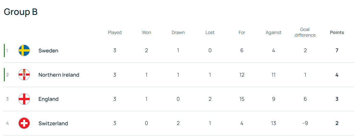 Підсумкова турнірна таблиця групи «В»