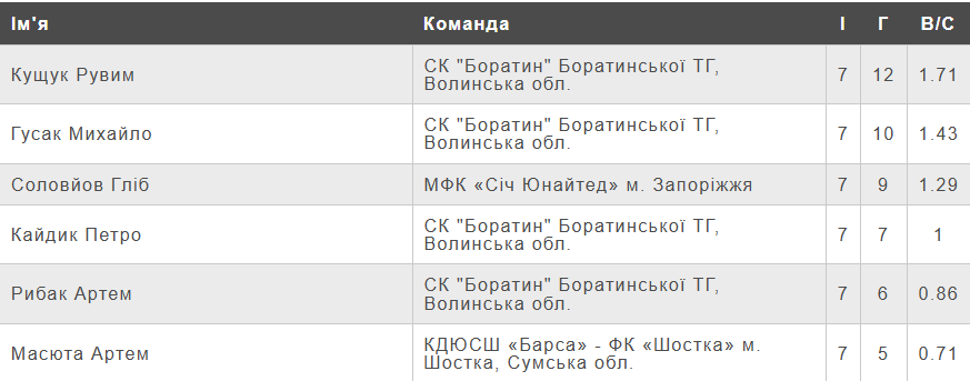 Турнірна таблиця чемпіонату України (U-17) серед команд Першої ліги після сьомого туру.