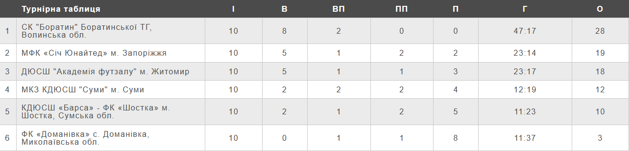 У Коломиї завершився чемпіонат України (U-17) серед команд Першої ліги. Оскільки переможцем змагань достроково став СК «Боратин», то в останній день головною інтригою було питання срібних та бронзових нагород, яке в особистій зустрічі вирішували «Січ Юнайтед» та «Академія футзалу». Основний час переможця не виявив, а у серії пенальті підопічні Олександра Моргунова переграли житомирян.