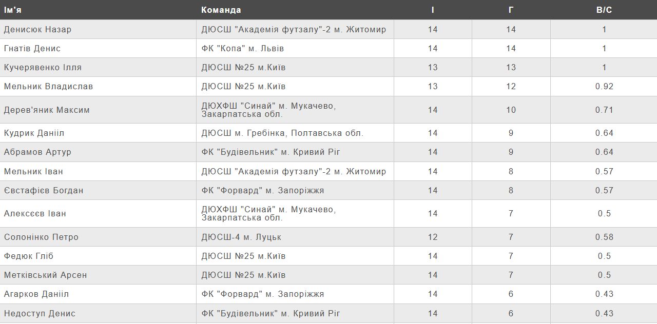 Підсумкова турнірна таблиця першого етапу чемпіонату України (U-13) серед команд Першої ліги.