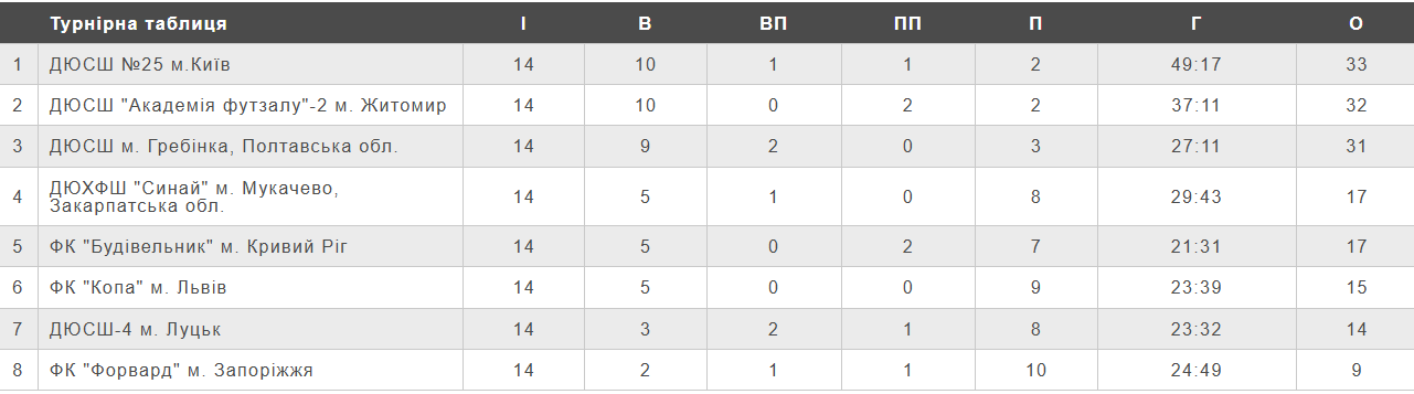 14.00. ДЮСШ № 25 (Київ)/«Форвард» (Запоріжжя) – ДЮСШ (Гребінка)/«КоПа» (Львів)