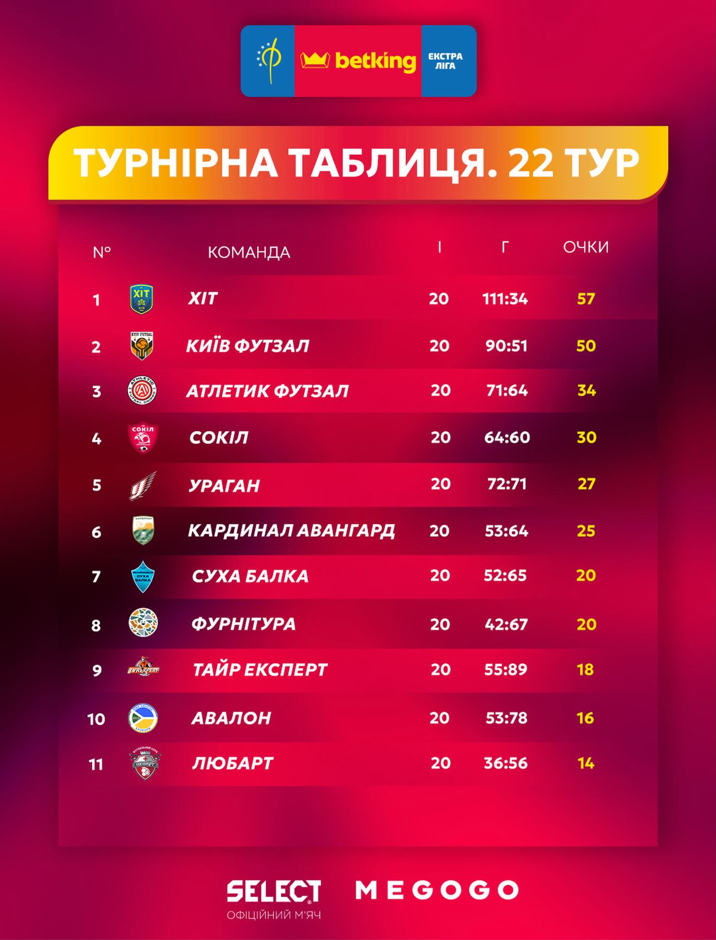 У чемпіонаті України серед команд betking Екстра-ліги відбулись матчі двадцять другого туру, який став останнім у регулярній частині сезону. Саме цей тур визначив усіх чвертьфіналістів, які зіграють у плей-оф. Перед цим туром на дві останні перепустки претендували три команди: «Суха Балка», «Фурнітура» та «Tyre Expert». У підсумку одеський клуб був відчеплений від топ-вісімки.