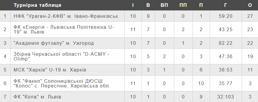 13.00. «Академія футзалу» (Ужгород) – «Ураган-2-КФВ» (Івано-Франківськ)